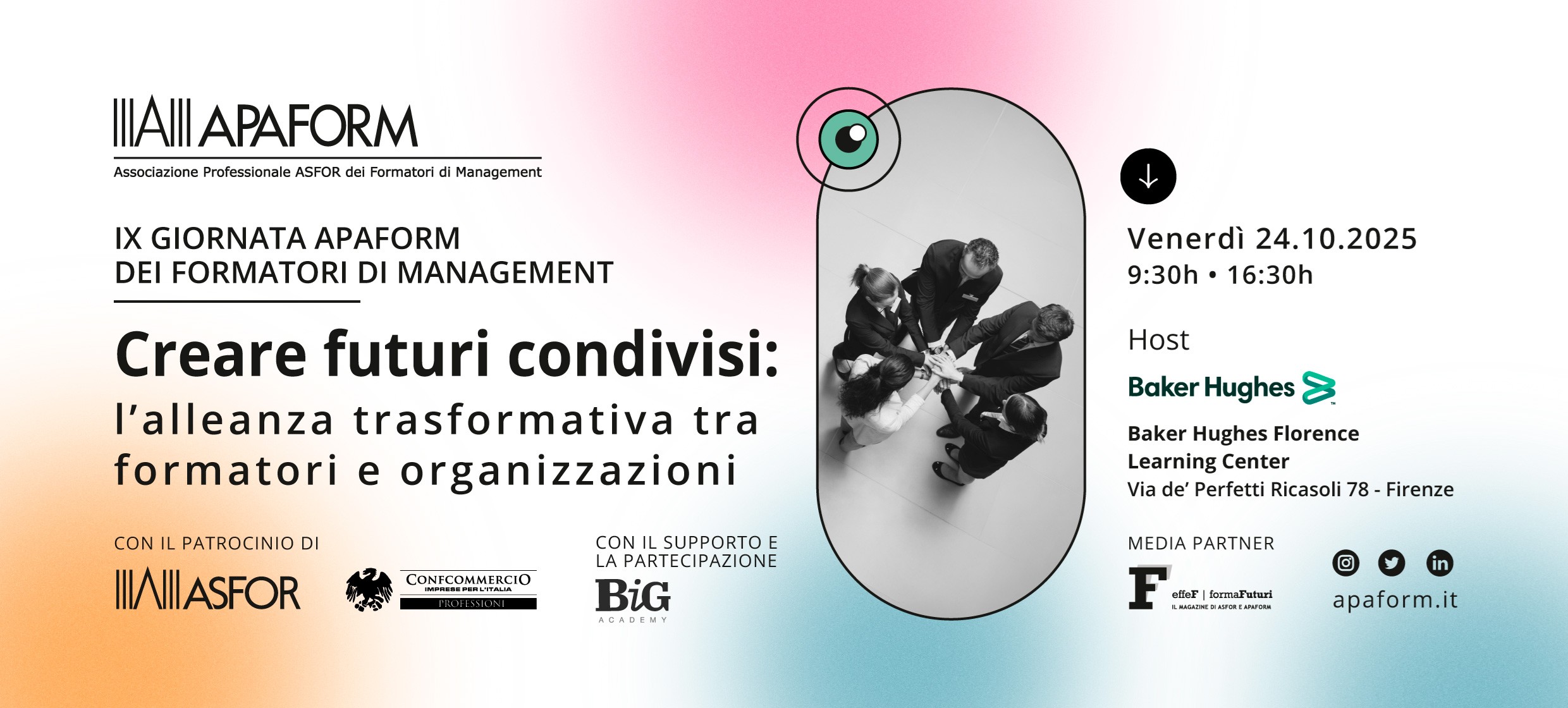 - Inoltre, nel caso abbia espresso il consenso esplicito, i Titolari del trattamento potranno elaborare le immagini e registrazioni audio dell’interessato. In questi casi lei autorizza, APAFORM e ASFOR in occasione dell’evento ad effettuare riprese audio-video, utilizzare la sua immagine, video-riprenderla (di seguito “i dati e l’immagine”) e successivamente utilizzarli per promuovere attività di comunicazione, iniziative editoriali che riguardano la presentazione delle attività nonché per pubblicazioni sia cartacee che sul sito istituzionale dei Titolari e sui rispettivi canali social.